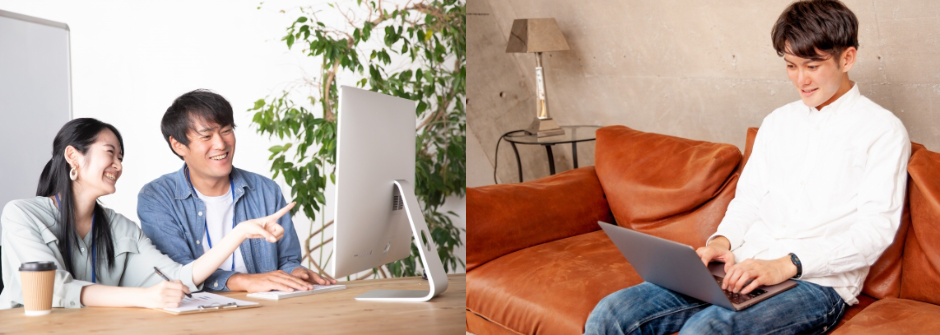 コロナ対策も万全のオンライン環境での受講も可能!さらに!受講終了後に希望があれば、WEBエンジニアとして採用制度まで充実しています!講師が働く現場で仕事ができるため人間関係も円滑で安心です。